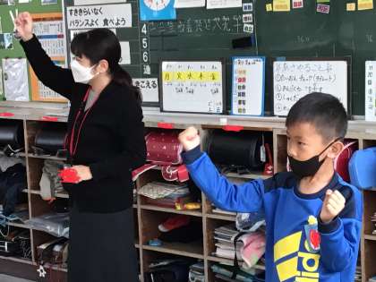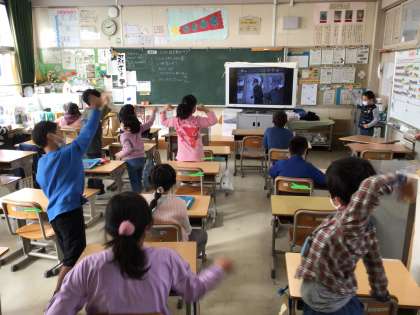今年度より学習用タブレットでアプリ「オガトレHIT」が使用できるようになりました。授業でやってみたい人と聞くと勢いよく手をあげました。みんなで仲良く交代してアプリのゲームをしています。