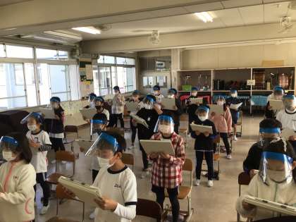次は、4年生学年歌「ひとつぶのいのち」の練習です。今は、息をしっかり吸って歌う練習に取り組んでいます。久しぶりの歌練習なので、息をしっかり吸って息を吐くという動きがかなり難しいようです。歌い終わった後、「大変だぁ!」と言いながらも、みんな笑顔です。2月の学習発表会で披露できたらよいなと考えています。