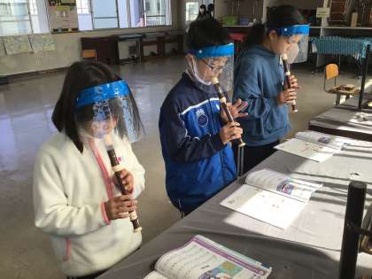 最後は、リコーダーの合奏です。初めて取り組むリコーダーのアンサンブルです。その音色を聴いた子どもたちからは歓声があがりました。どの子もアンサンブルに参加できるよう、コツコツ練習していきます。