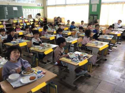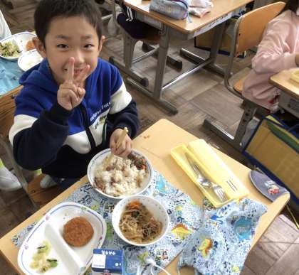 1年生の給食の時間です。 すき焼きです。 美味しかったです。