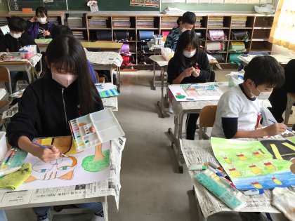 11月18日(金)、5年生は読書感想画を描く授業を行いました。