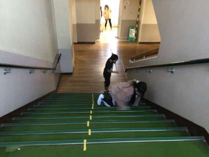 掃除の時間では、それぞれの担当の場所をきれいにしています。「だまってすみずみまで時間いっぱい」を達成できるように頑張っています。