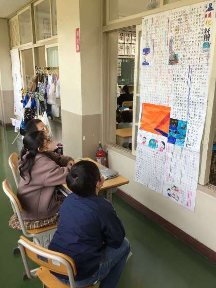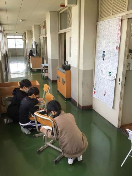 SDGsや環境問題についてまとめたものを見ながら発表原稿を考えています。