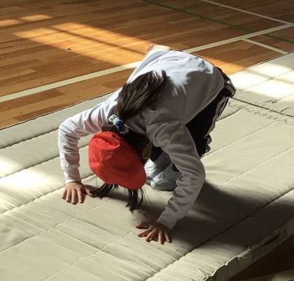 久しぶりに体育の授業でマット運動を行いました。手をつく位置や足音を立てないで回るなどコツを聞きながら、何度も頑張っている姿が見られました。怖がってしまってやれなかったり、手のつき方がバラバラになってしまったりしている子もいました。それでもがんばって練習していました。