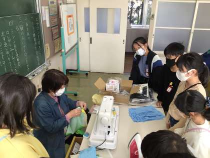 本日、5年4組では、家庭科の授業でミシンを使いました。