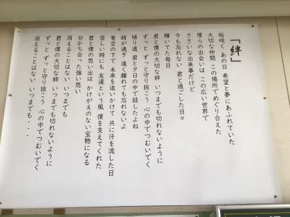 11月24日に学年での合唱練習が始まりました。はじめての体育館練習に緊張し、なかなか声のボリュームがあがりませんでした。クラスでどんな合唱にしたいのか話し合い、黒板に目標を書きました。これをクラスでまとめ、学年で話し合い、合唱のスローガンにつなげていきます。ここからの成長に期待です。