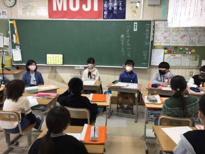 11月29日(水)の2・3限、5年2組では、「これからの食で意識していきたいこと」についてのパネルディスカションを行いました。2限に、自分の立場ごとに構成メモを書いた後、3限に、全体でのパネルディスカッションに挑戦しました。初めてにも関わらず、話し合いがスムーズに進みました。