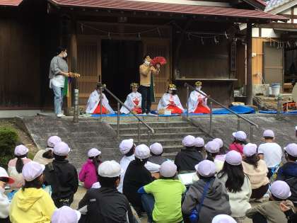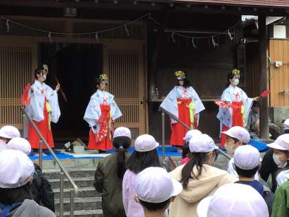 代表児童が巫女舞を体験させてもらいました。