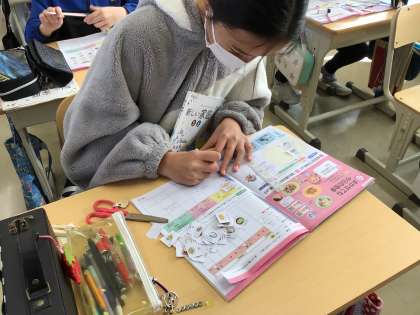 12月2日(金)、家庭科で栄養のバランスや旬の食材、家族の好みを考慮しながら、家族が喜ぶ献立を考えました。自分の好きなものだけで献立を考えると栄養のバランスが崩れてしまい、献立がなかなか決まらず苦戦している子もいました。どんな献立ができるか楽しみです。