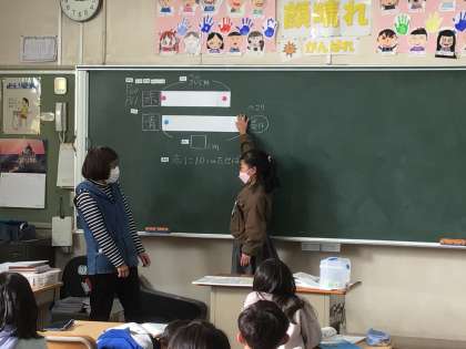 2年生の算数の授業の様子です。 サポートティチャーによる算数の授業です。