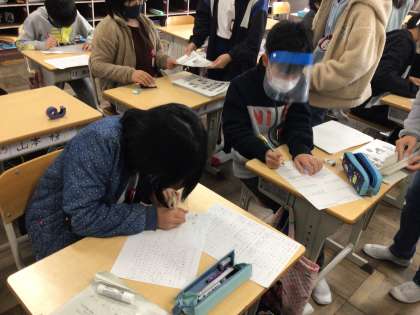 自分たちが作成した問題を製本していました。どのような形で、他の児童に配布されるのか、楽しみです。