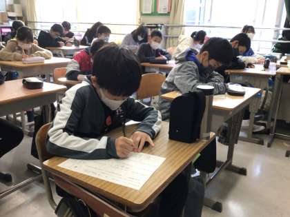 5年生は、毎週月・金曜日に漢字テストを行っています。