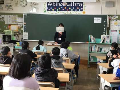 この日の5年4組では、図書館司書の先生から、宮沢賢治という作家について、詳しく教えて頂きました。授業で宮沢賢治の作品に興味をもった子どもたちは、黙々とその作品を読んでいました。