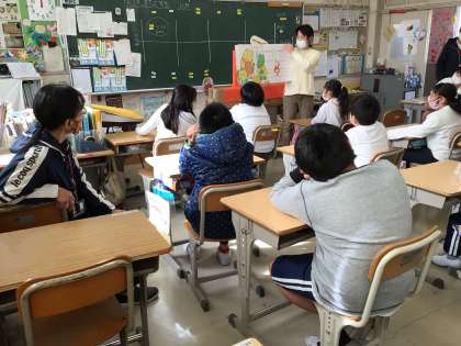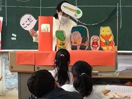 学校司書さんが「でんしゃにのって」のお話をしてくれました。