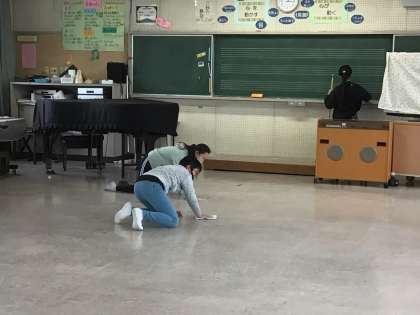 掃除の時間はたった15分、隅々まできれいにするのは難しい場所ですが時間いっぱい掃除をしています。