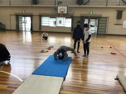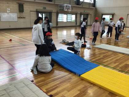 体育のマット運動では、いろいろな技に挑戦しようという意識が高まっています。友達同士で補助し合ったり、練習方法を工夫したりしてレベルアップを目指しました。できるようになったと報告してくれる笑顔が溢れた授業となりました。