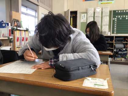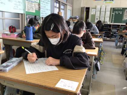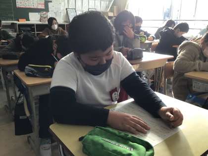 12月12日(月)、5年生は、先週の金曜日に行った漢字テストと同じ範囲で、2回目のテストを行いました。この写真は、5年1組の様子ですが、どのクラスでも集中して取り組む様子が見られました。