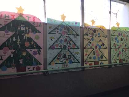 写真は、子どもたちの頑張りの証とも言える、クリスマスツリーの飾りです。懇談会時にぜひ見てください。