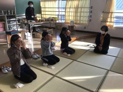 写真は茶道クラブの様子です。