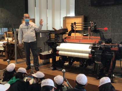 喜一郎の父、豊田佐吉氏が発明した自動織機が動く様子を見て、発明した技術力の高さに驚いていました。喜一郎物語を大型映像で視聴したり、自動車開発の様子をジオラマで見たりして、自動車づくりにかける喜一郎氏の努力や苦労について詳しく調べることができました。実際に喜一郎氏が開発した車両や生い立ちの分かる年表を見たことで、新しい発見があり、充実した学習となりました。