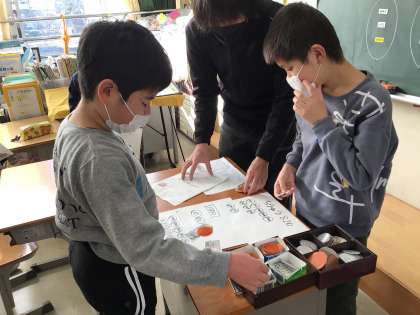 駅員役と乗客役に分かれて、切符を買う練習をしました。