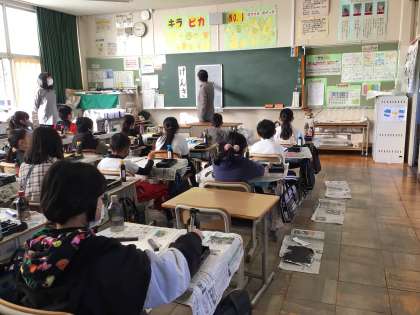 習字の講師の方をお招きして、各学級で毛筆の書き方を教えていただいています。一文字ずつ、筆の運び方や向きについて教えてもらったり、アドバイスをいただいたりしました。書き初め大会が楽しみです。