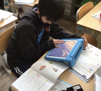 静かに教え合いをしたり、一人黙々とタブレットに向かい合っていたりしました。