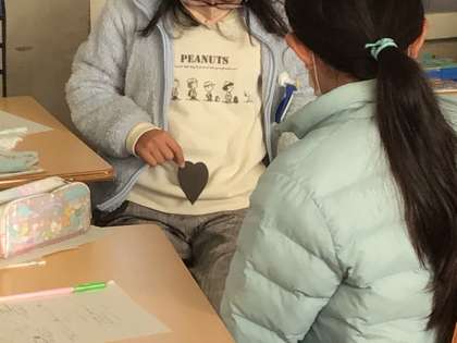 らんしの大きさはどのくらいかな。子宮の大きさは黒のハートぐらい、卵子は黒いハートに小さな穴くらいと教えてもらい、びっくりしていました。
