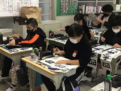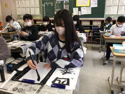 冬休みの宿題には、書き初めの練習もあります。1月10日の書き初め大会本番に向けて、自宅でも頑張って練習してほしいものです。