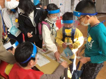 切符を買ったり、特産物(自分たちで作製したもの)をもらったりしています。