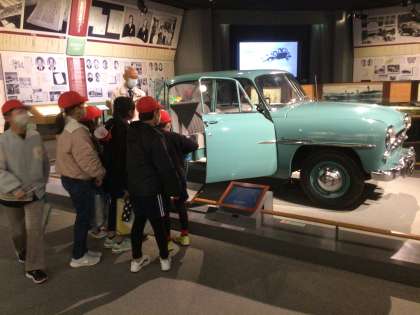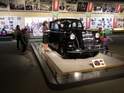 トヨタ鞍ケ池記念館の展示室にあったトヨペットクラウン(RS型)とトヨダAA型乗用車に見入っていました。ピカピカで重厚でかっこよかったですね。