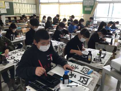 5年 書き初め大会3 公開日 2023/01/10 更新日 2023/01/10 お知らせ 書き初め大会の続きです。 この写真は、5年2組の様子です。 時間ぎりぎりまで粘って書き上げる姿が見られました。