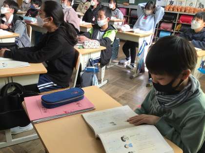 1月12日(木)、5年4組では、国語科で古文の学習を行いました。