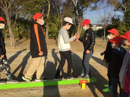 ジャングルジムや平均台、ブランコもあり、楽しみながら遊んでいました。
