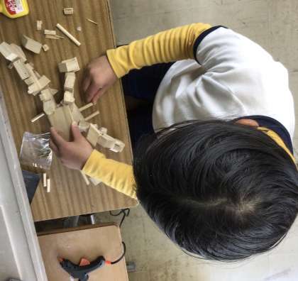 丁寧に色を塗ったり、部品をくっつけたりして、自分が作りたい物を完成させようとしています。