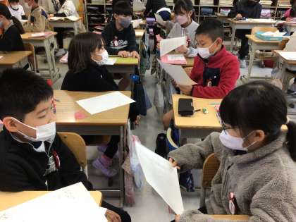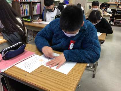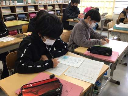 1月16日(月)、5年2組では、前の時間に下書きをした現代版枕草子を清書し、その後は友達の作品を読んで交流を行いました。そして、友達の書いた随筆を読んで、自分が共感できたこと、見方や考え方が違うことなどをワークシートにまとめました。