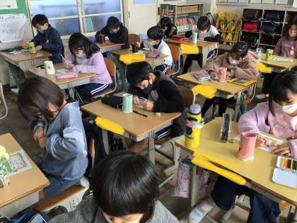 小清水小フェスティバルではランプシェードを展示します。製作は冬休み前にしており、子どもたちは焼き上がりを心待ちにしていました。それぞれの模様や色、題名に注目してぜひ見ていただければと思います。