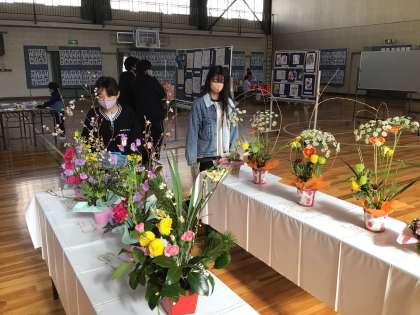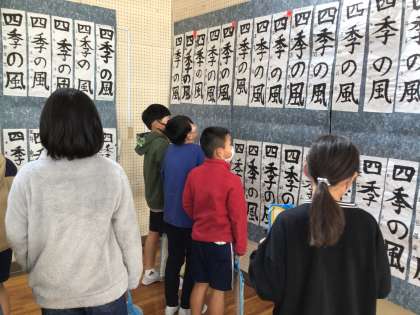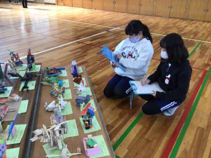 体育館に展示されている他学年の作品やクラブの時間で作成した作品を見て、それらの工夫を見つけました。