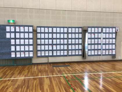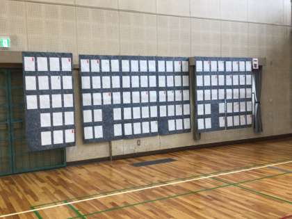 1月18日 小清水フェスティバル 書き初め1 公開日 2023/01/18 更新日 2023/01/18 お知らせ 書き初め大会の作品が掲示されています。 1、2年生は硬筆、3年生は初めての毛筆です。 1、2年生の写真はよくわからないですよね。 是非見に来てください。 1年 2年 3年