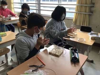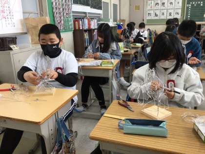 1月23日(月)、5年2組では「立ち上がれ!ワイヤーアート」の学習を行いました。