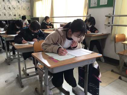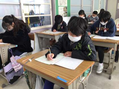 5年生の三科目めは、算数でした。この写真は、5年3組の様子です。