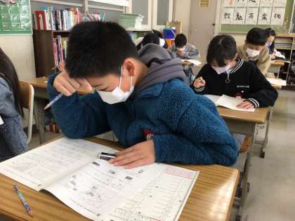 四科目めは、社会でした。この写真は、5年2組の様子です。