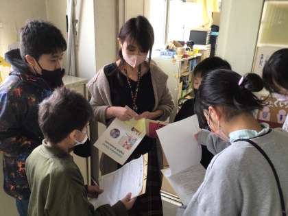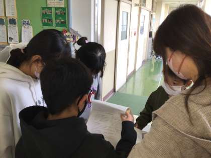 計画書が完成したクラスから、担当の先生の所へ持っていきます。