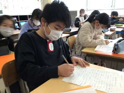 この写真は、5年3組の様子です。ワークシートにぎっしり調べることができていました。