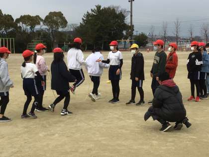 個人技の練習の後、八の字跳びをみんなで行っていました。