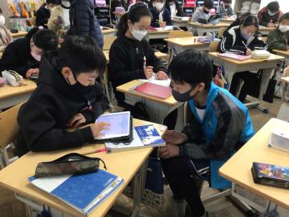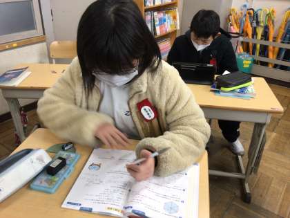難しい問題も、友達と教え合って解決しようとする姿が見られました。