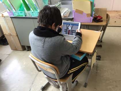 「発表ノート」で絵日記をかきました。縄跳びの練習をしたことについてかいているところです。
