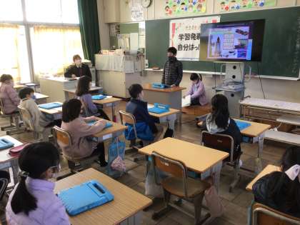 タブレットでプレゼン資料を作成して、「自分はっけん」を発表しました。