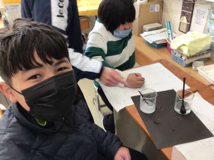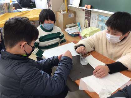 5年生の理科の学習の様子です。「もののとけ方」の実験をしました。
