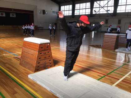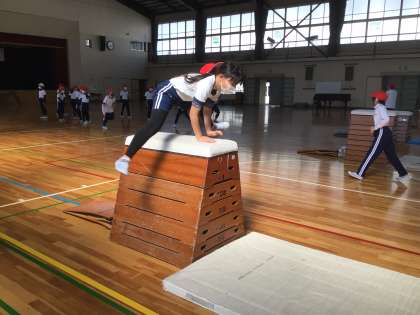 跳び箱運動の2回目で、徐々に開脚跳びに慣れてきました。